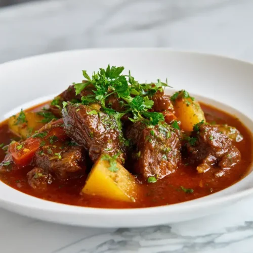 This beef stew combines tender meat, hearty vegetables, and rich broth in the most comforting way possible. The slow simmering process allows flavors to develop depth that quick versions simply cannot match. It’s the kind of dish that makes everyone ask for seconds and request the recipe, perfect for those nights when only real comfort food will do.