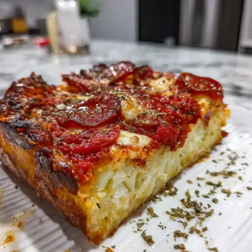 Learn how to make authentic Detroit Style Pizza at home with our easy recipe featuring a crispy crust topped with brick cheese and pepperoni.