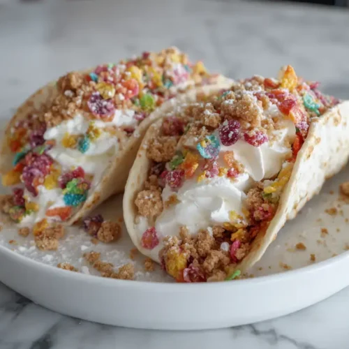 Creating these Fruity Pebbles cheesecake tacos always brings me so much joy. They are a reminder that the best recipes are often the ones that combine simplicity with a little bit of magic. I hope this fun and easy dessert idea brings a burst of color and a whole lot of happiness to your table. So gather your ingredients, preheat that oven, and get ready to create a new family favorite. Don’t forget to share your creations with me—I love seeing how you bring these recipes to life in your own kitchen!